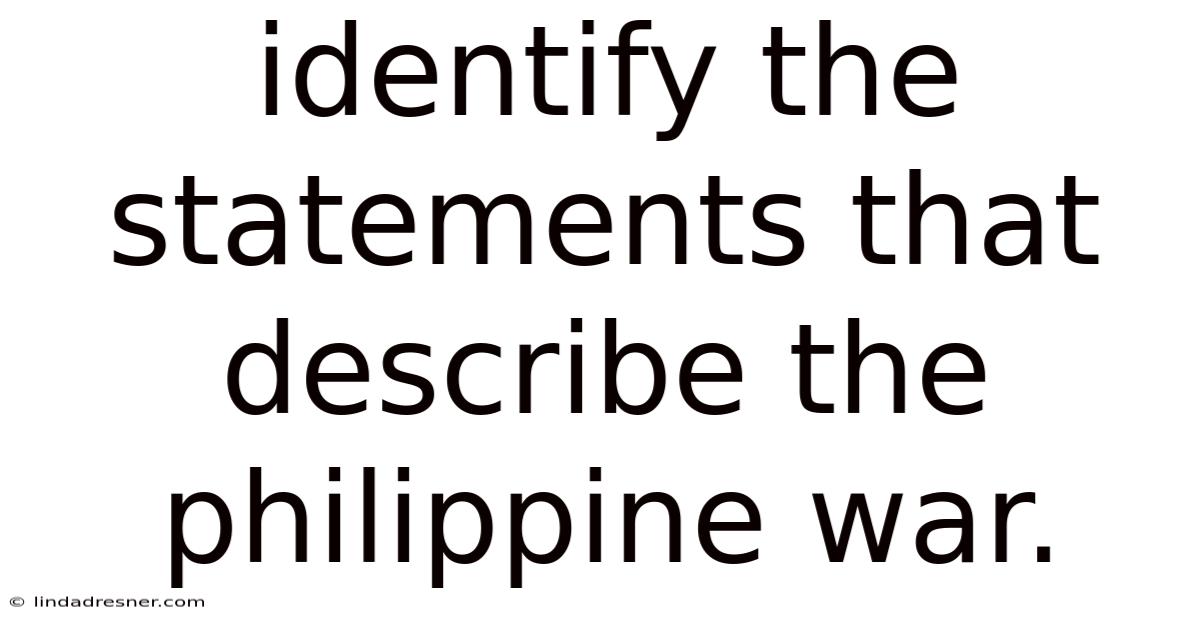 The term "Philippine War" can refer to multiple historical conflicts, but it most commonly points to the Philippine-American War (1899–1902), a central struggle that shaped the Philippines' colonial trajectory. This war emerged from the broader context of the Philippine Revolution against Spanish colonial rule, which culminated in the Treaty of Paris (1898) and the subsequent U.Worth adding: s. Here's the thing — acquisition of the Philippines. Which means understanding which statements accurately describe this conflict requires a clear grasp of its historical context, key events, and defining characteristics. This article aims to guide readers in identifying statements that align with the realities of the Philippine War, emphasizing its significance in Philippine history.
