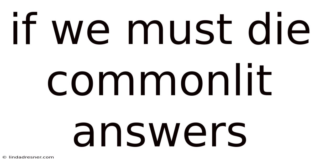 The phrase If We Must Die Commonlit answers often refers to the process of analyzing and responding to questions about Claude McKay’s powerful poem If We Must Die. Practically speaking, this poem, written during the height of the Harlem Renaissance, is a cornerstone of African American literature and a profound exploration of resistance, dignity, and the human spirit in the face of oppression. That's why for students and educators using Commonlit, mastering the poem’s themes and literary devices is essential to crafting insightful answers. This article walks through the nuances of If We Must Die and provides actionable strategies for tackling Commonlit questions effectively Not complicated — just consistent..