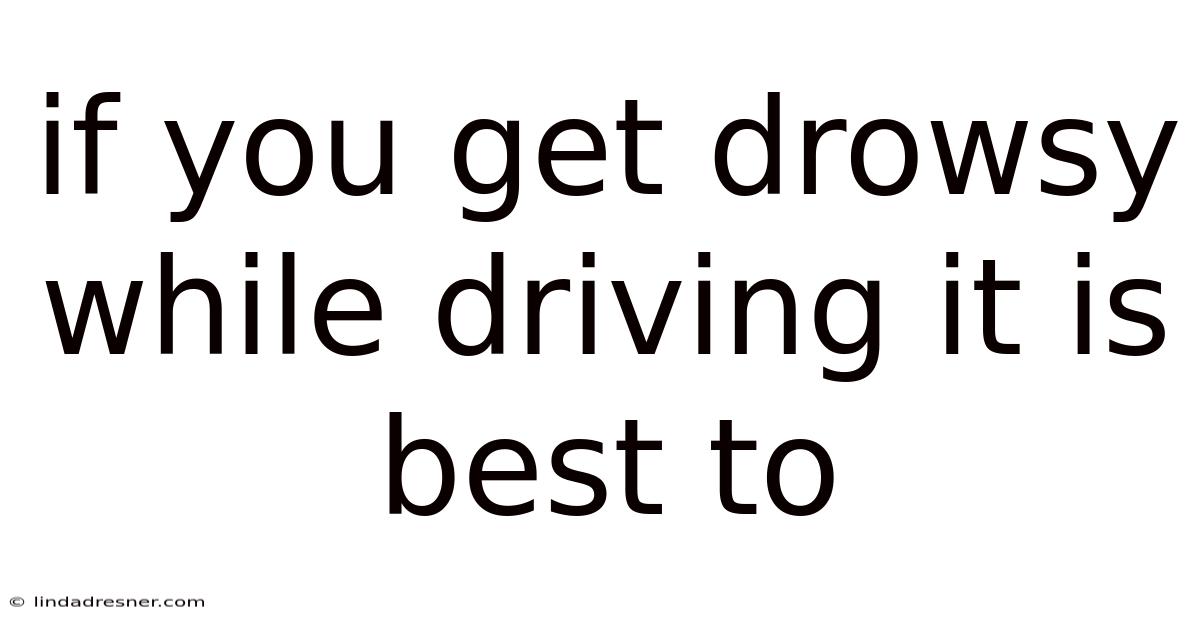 If You Get Drowsy While Driving It Is Best To