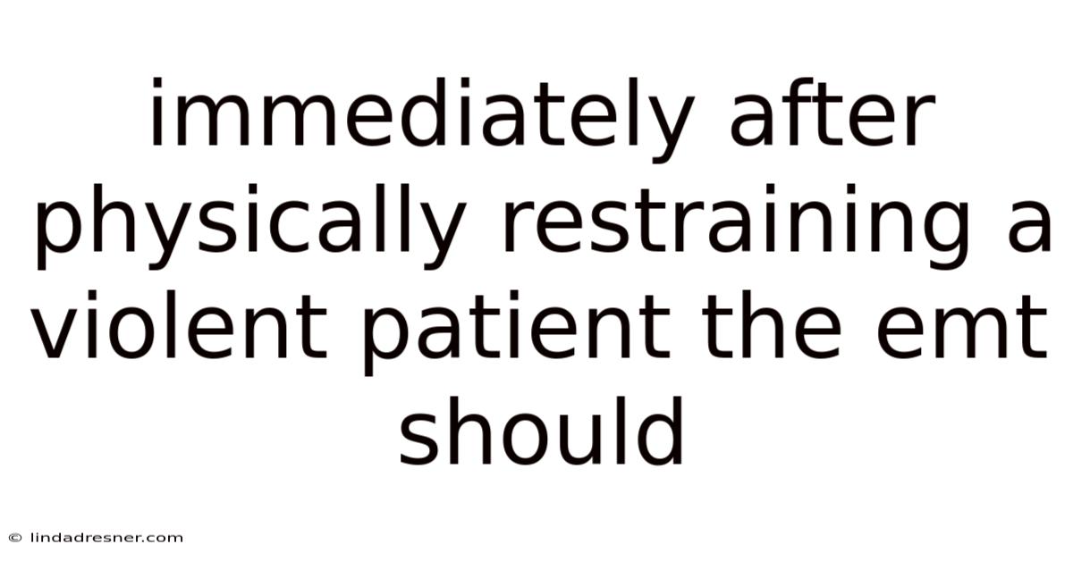 Immediately after physically restraining a violent patient the EMT should prioritize ensuring the patient’s safety, monitoring their physical and emotional state, and initiating appropriate medical care. This critical phase requires a systematic approach to prevent further harm, address potential injuries, and prepare for the patient’s transition to further care. The actions taken in this moment can significantly impact the patient’s outcome and the EMT’s ability to manage the situation effectively.