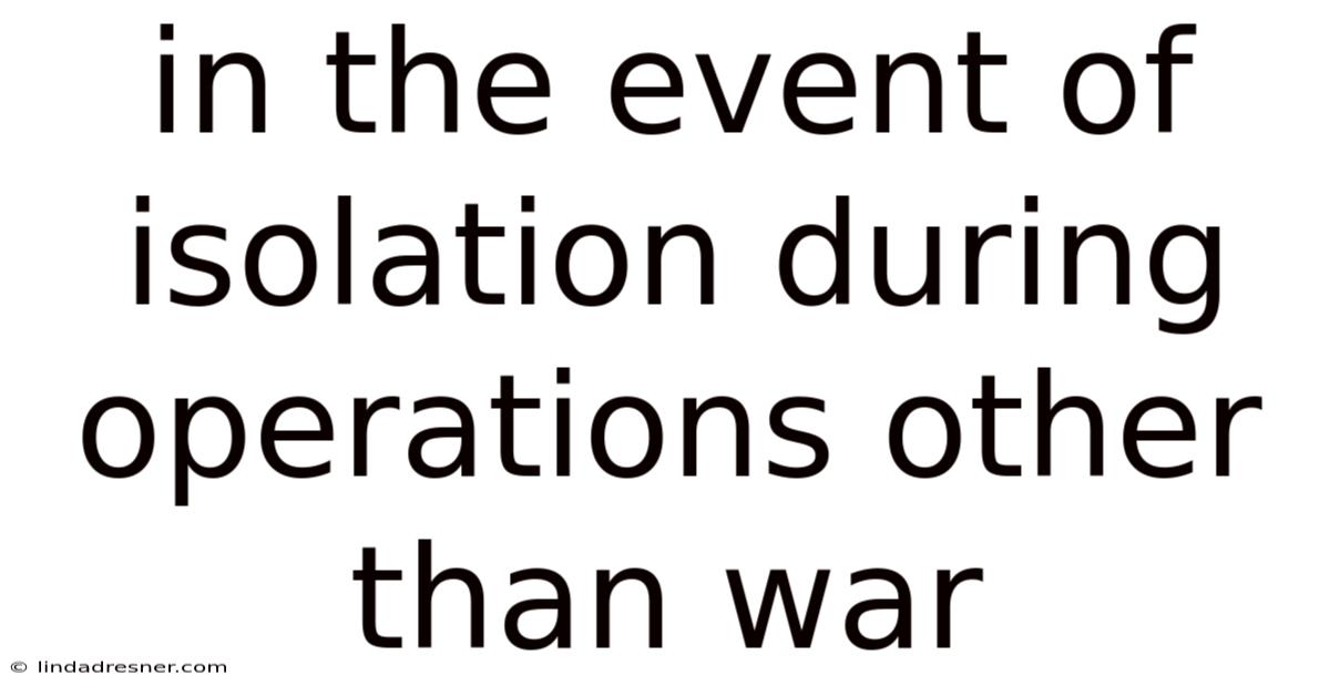 Isolation during operations other than war refers to a scenario where individuals or groups are cut off from external support, communication, or resources due to unforeseen circumstances such as natural disasters, infrastructure failures, or accidental entrapment. Whether it’s a remote research team stranded by a storm, a group of workers trapped in a collapsed building, or a traveler lost in an uncharted area, isolation can pose life-threatening risks. And unlike military conflicts, these situations often lack the structured protocols of wartime, making survival and adaptation critical. Understanding how to figure out such scenarios is not just a matter of survival but also a testament to human resilience and preparedness Not complicated — just consistent..