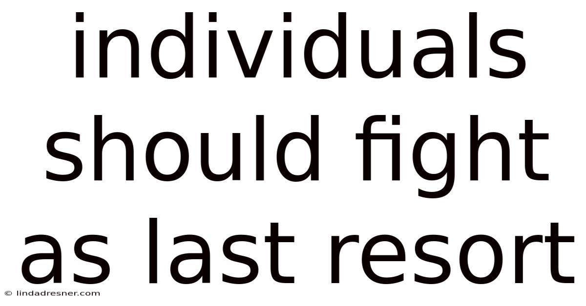 The principle that individuals should fight as last resort is more than a moral guideline; it is a practical framework for preserving safety, dignity, and social cohesion. By understanding the root causes of conflict, recognizing the hidden costs of violence, and applying systematic de‑escalation techniques, people can often resolve disputes without resorting to physical confrontation. Communities and policies that reinforce these values further embed a culture where peaceful resolution is the default, not the exception. Which means when circumstances inevitably demand a defensive response, it must be measured, lawful, and aimed solely at neutralizing an imminent threat. Embracing this mindset empowers individuals to protect themselves and others while fostering a world where violence is truly a final, unavoidable option That's the part that actually makes a difference..