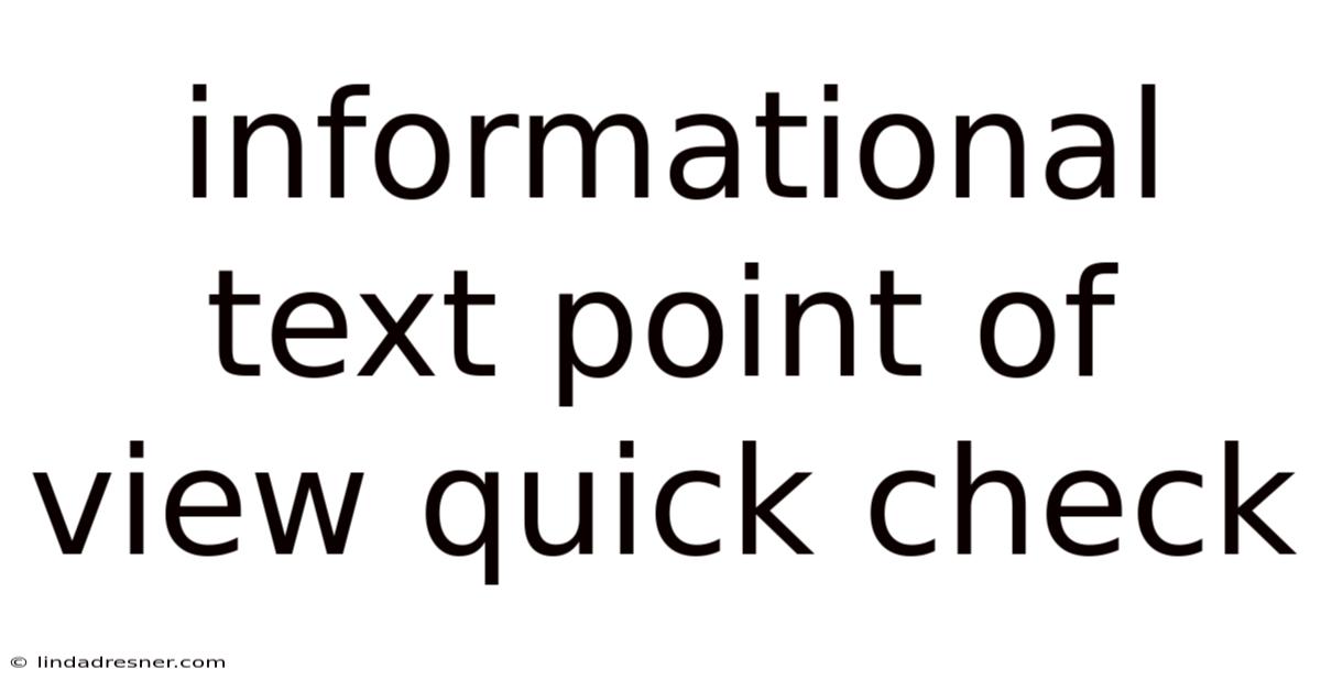 Point of view in informational texts refers to the perspective from which information is presented. And unlike narrative texts that often feature characters' perspectives, informational texts present facts, data, and explanations from a specific angle or stance. Understanding point of view helps readers critically evaluate the information presented and recognize potential biases or underlying purposes The details matter here..
