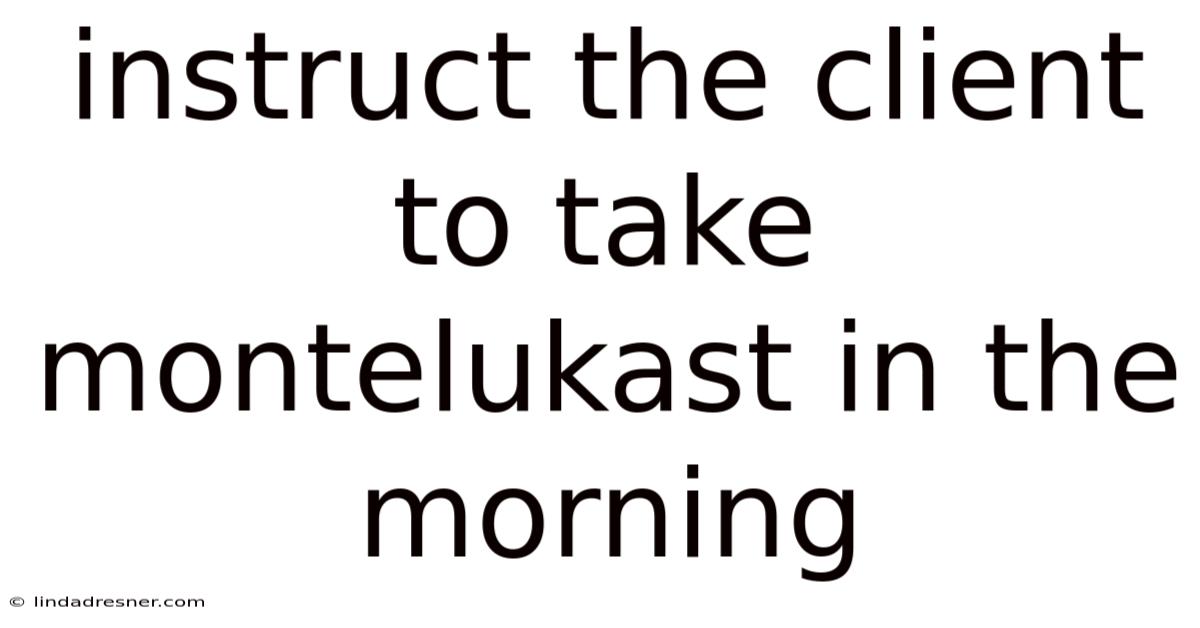 Instructing the client to take montelukast in the morning is more than a simple dosing instruction; it is a strategic approach rooted in pharmacokinetics, inflammation patterns, and practical adherence techniques. By aligning medication intake with the body’s natural leukotriene surge, clinicians can significantly improve asthma control, reduce nocturnal symptoms, and enhance the overall well‑being of patients with respiratory conditions.