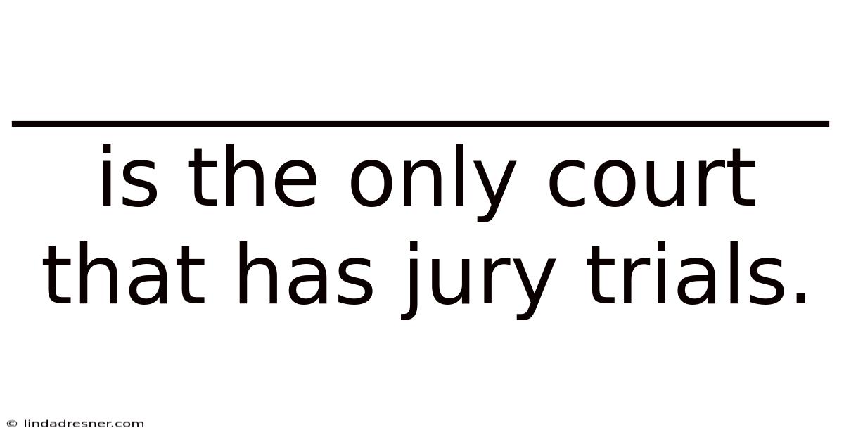 The statement “____________________ is the only court that has jury trials” points to a fundamental pillar of many justice systems, particularly in the United States. Because of that, this distinction is critical: while appellate courts review decisions for legal errors, only trial courts—where facts are initially presented and disputed—empanel juries to determine those facts. That's why this system separates the roles of fact-finder (the jury) from the role of law-interpreter (the judge), a cornerstone of the American legal tradition. The correct completion is trial courts, also known as courts of first instance or original jurisdiction. Understanding why this is true requires exploring the structure of the court system, the constitutional guarantees behind jury trials, and the profound civic responsibility they represent.