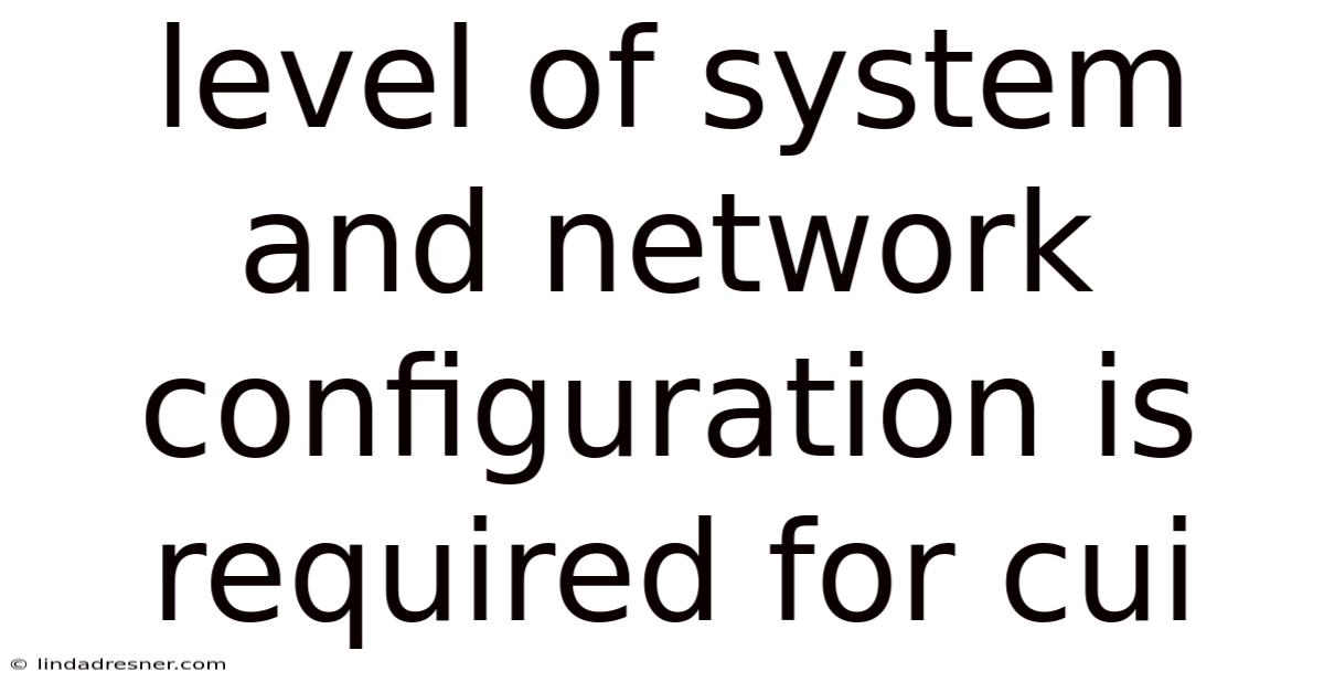 The level of system and network configuration required for CUI is substantial and multifaceted. Organizations must approach this challenge systematically, implementing comprehensive security controls while maintaining operational efficiency. Success requires ongoing commitment to security best practices, regular assessments of configuration effectiveness, and adaptation to emerging threats and regulatory changes. By investing in appropriate system and network configurations, organizations can effectively protect CUI while meeting their operational objectives.