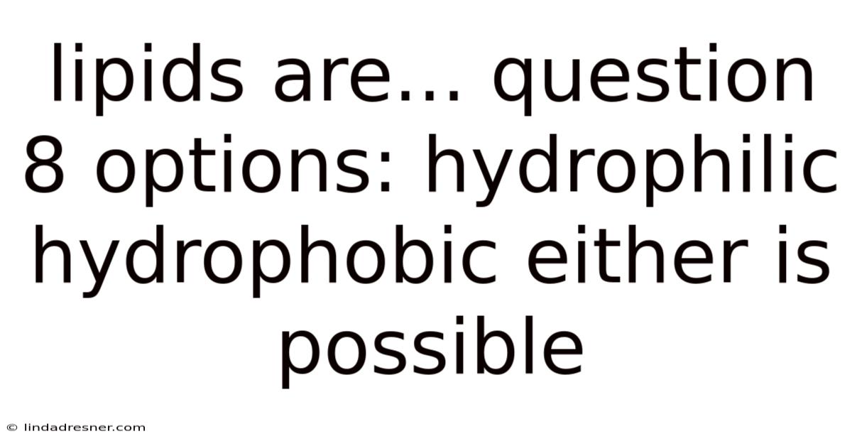 Lipids Are... Question 8 Options: Hydrophilic Hydrophobic Either Is Possible