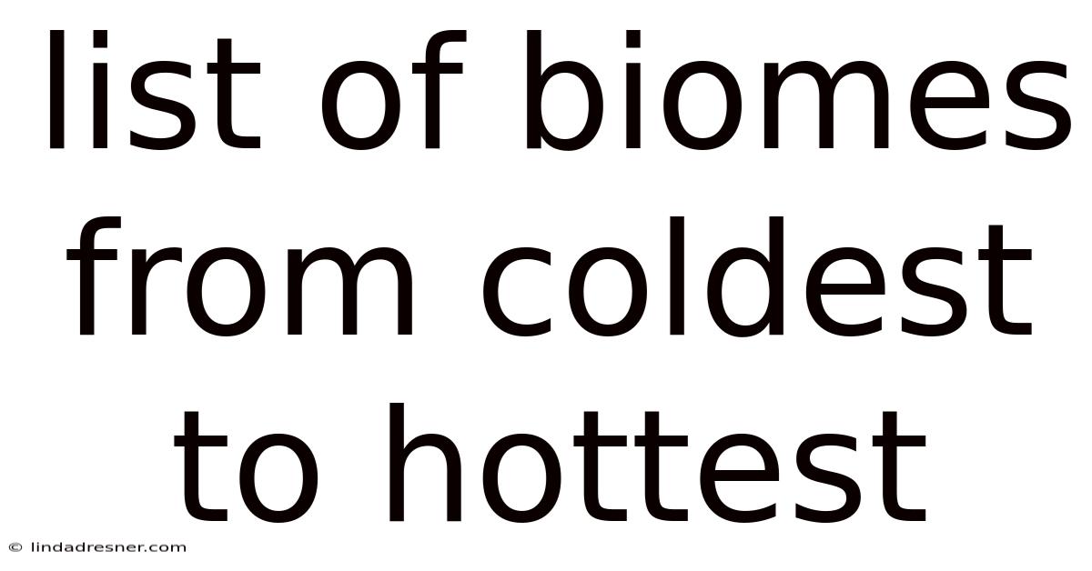 The list of biomes from coldest to hottest provides a clear roadmap for grasping how Earth’s major ecological zones shift with temperature, latitude, and altitude. This guide arranges biomes in ascending order of average thermal conditions, highlighting the unique climate, flora, and fauna that define each zone. By following this sequence, readers can visualize the planet’s thermal gradient, from icy polar deserts to scorching deserts near the equator. The arrangement also serves as a practical reference for educators, students, and nature enthusiasts seeking a concise yet comprehensive overview of global biomes ordered by heat.