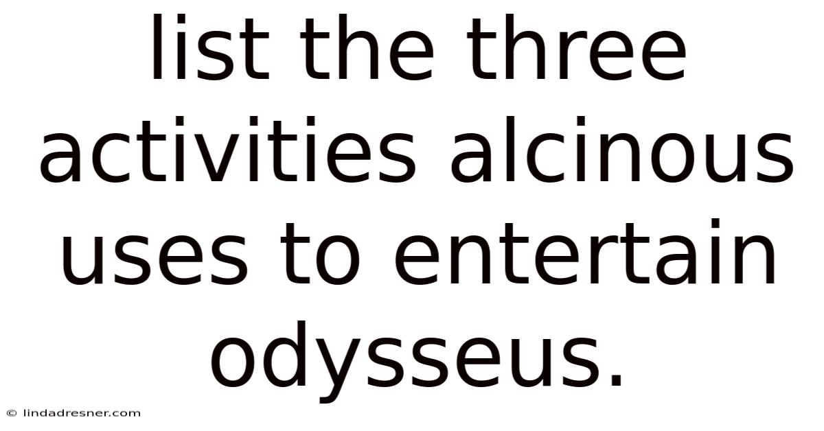 In Homer's Odyssey, the arrival of Odysseus at the court of Alcinous, king of the Phaeacians, marks a critical moment where the wandering hero finally finds a hospitable haven. This article explores the three principal activities Alcinous arranges for Odysseus: a lavish banquet, a spectacular athletic competition, and a moving musical‑poetic performance. The Phaeacians are renowned for their love of art, sport, and refined ceremony, and Alcinous, as their gracious host, orchestrates a series of entertainments that both honor the guest and showcase the cultural ideals of his kingdom. Understanding these events not only illuminates the narrative function they serve in the epic but also reveals deeper insights into ancient Greek concepts of xenia (guest‑friendship), arete (excellence), and the power of storytelling Simple as that..