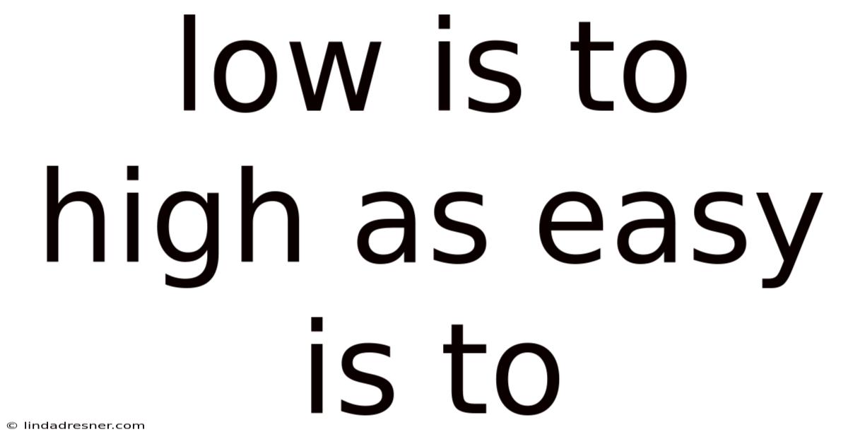When we consider that "low" is to "high" as "easy" is to "difficult," we're examining a comparative relationship between opposing concepts. This analogy illustrates how we understand concepts through their opposites. The relationship between "easy" and "difficult" mirrors that of "low" and "high" in several important ways: