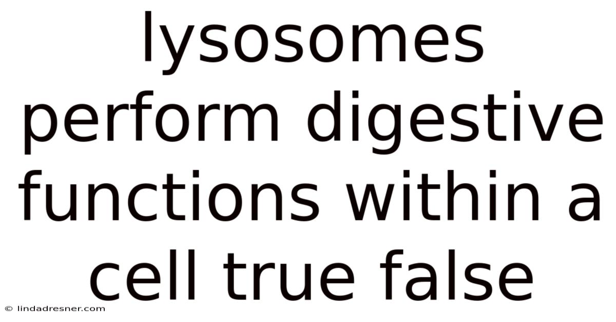 Lysosomes Perform Digestive Functions Within A Cell True False
