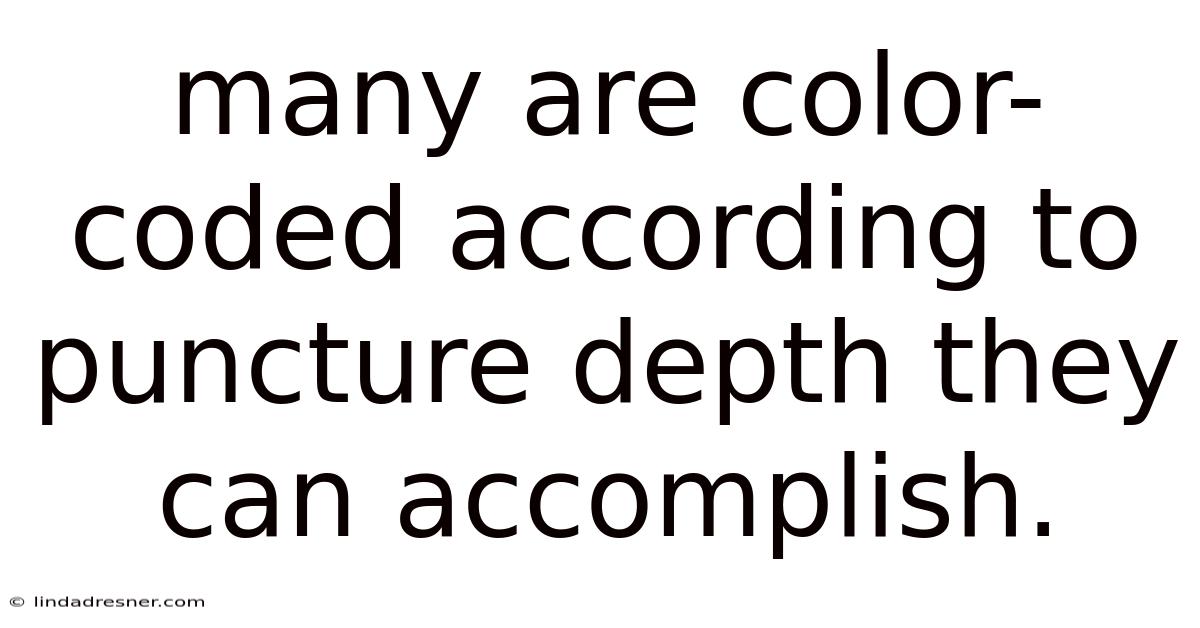 Many are color‑coded accordingto puncture depth they can accomplish, and this simple visual cue has transformed the way clinicians, educators, and hobbyists approach needle‑based techniques. Practically speaking, the color‑coding system provides an instant reference for the appropriate needle length and gauge for a given tissue type, patient condition, or procedural goal, reducing the risk of overshooting or undershooting the target depth. By integrating this visual language into training curricula and everyday practice, professionals can enhance safety, improve patient outcomes, and streamline decision‑making in both clinical and educational settings. Understanding how these colors correspond to specific puncture depths is essential for anyone who regularly performs injections, biopsies, or other percutaneous procedures Practical, not theoretical..