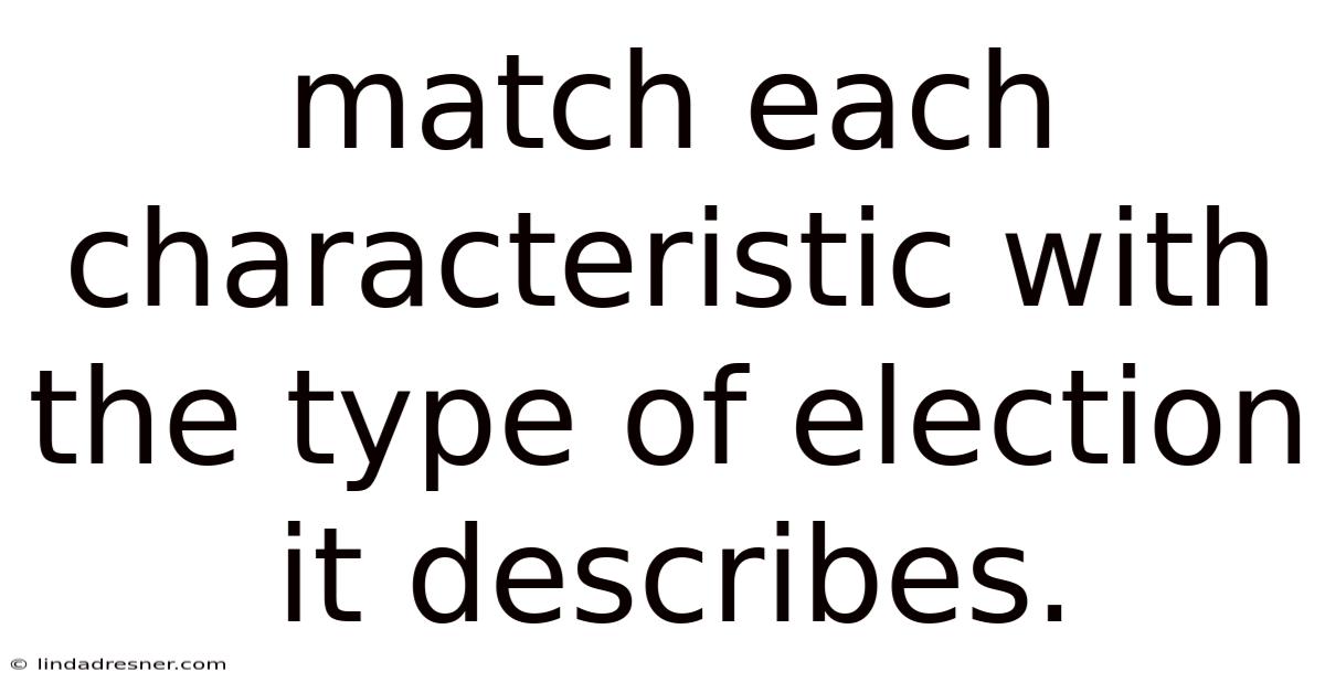 Elections are diverse mechanisms designed to translate public will into political authority. Whether you are a first‑time voter, a seasoned campaign volunteer, or a civic educator, mastering these distinctions enhances both personal engagement and collective understanding of the democratic process. By matching each characteristic—open participation, party focus, majority guarantees, vacancy filling, or direct policy voting—to its corresponding election type, we gain a clearer picture of how democratic societies function. Armed with this knowledge, you can deal with any ballot box with confidence, knowing exactly what the vote you are casting represents Surprisingly effective..