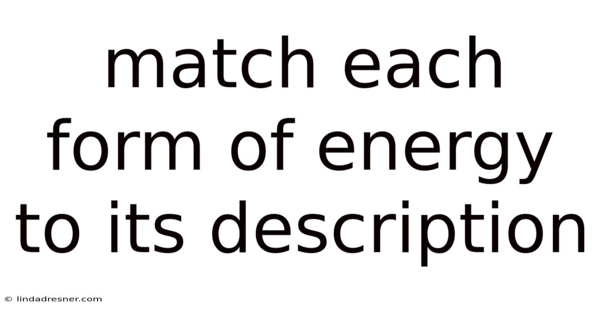 Match Each Form of Energy to Its Description: A Complete Guide to Understanding Types of Energy