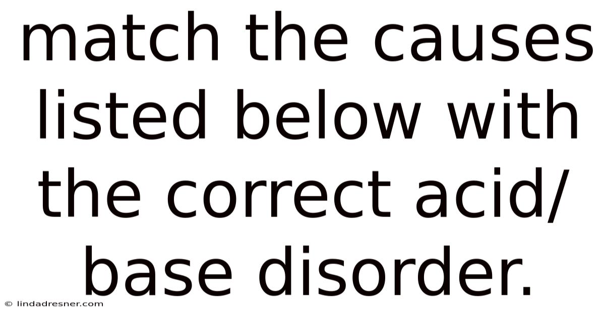 Acid‑base disorders are among the most frequently encountered abnormalities in clinical medicine, yet they often confuse students and clinicians alike. By identifying the underlying cause and pairing it with the appropriate acid‑base disturbance, healthcare providers can make rapid, accurate decisions that improve patient outcomes. This article walks through the classic causes of metabolic and respiratory acidosis or alkalosis, explains the physiological basis for each, and provides a handy reference table that matches every cause to its correct disorder Easy to understand, harder to ignore..