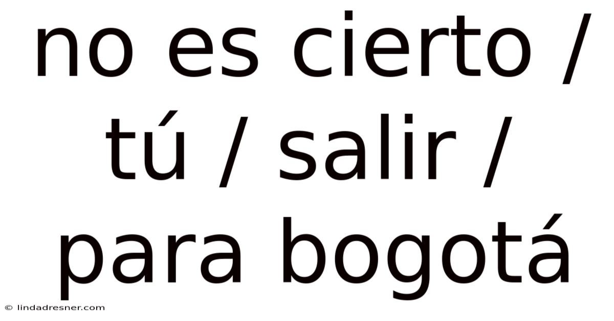 No Es Cierto / Tú / Salir / Para Bogotá