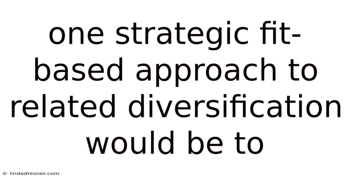 One Strategic Fit-Based Approach to Related Diversification Would Be to put to work Core Competencies and Synergies