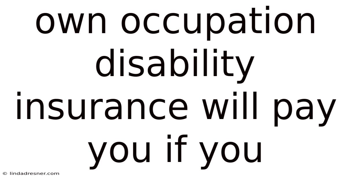 Own Occupation DisabilityInsurance Will Pay You If You Cannot Perform Your Specific Job