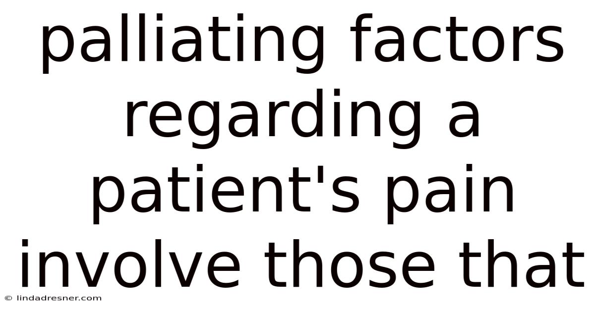Understanding that palliating factors regarding a patient's pain involve those elements that bring relief is vital for any successful healthcare intervention. By carefully identifying whether a patient responds to positional changes, temperature shifts, or specific medications, providers can move beyond simply treating a symptom and begin uncovering the root cause of the pathology That's the part that actually makes a difference..