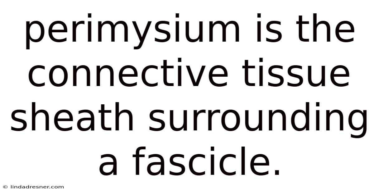 The perimysium is a vital component of skeletal muscle structure, serving as the connective tissue sheath that surrounds each fascicle. That's why its roles in providing structural support, facilitating force transmission, protecting muscle fibers, and supplying blood vessels and nerves make it indispensable for efficient muscle function. Understanding the perimysium not only deepens our appreciation of muscle anatomy but also highlights its importance in both health and disease. Whether you're a student, athlete, or healthcare professional, recognizing the significance of the perimysium can enhance your understanding of how muscles work and how to maintain their health That's the part that actually makes a difference..