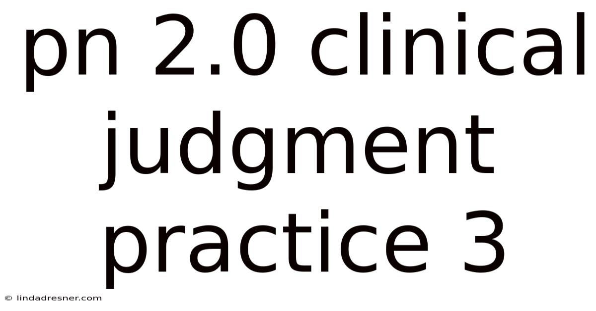 pn 2.0 clinicaljudgment practice 3 is a structured exercise designed to sharpen nursing students’ ability to apply the Clinical Judgment Measurement Model (CJMM) in real‑world scenarios. Now, this practice focuses on the third iteration of the PN 2. So 0 series, where learners confront a complex patient case, systematically gather relevant data, prioritize hypotheses, and select the most appropriate intervention. Even so, by working through this case, students develop critical thinking, clinical reasoning, and decision‑making skills that are essential for safe, effective patient care. The following article breaks down each component of pn 2.0 clinical judgment practice 3, offering a clear roadmap, practical tips, and answers to common questions, all while optimizing for search visibility and readability Easy to understand, harder to ignore. Nothing fancy..