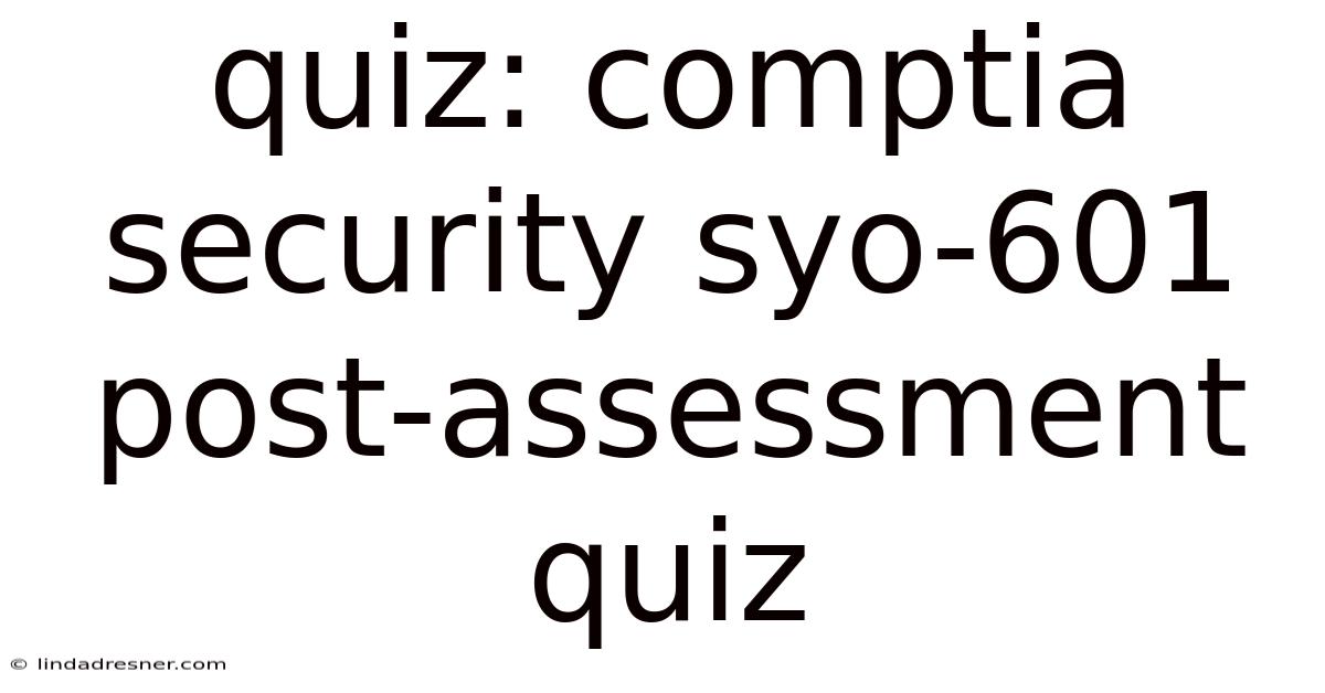 quiz: comptia security syo-601 post-assessment quiz serves as a vital checkpoint for anyone who has recently completed the CompTIA Security+ (SY0‑601) certification exam. This post‑assessment quiz is designed not only to reinforce key concepts but also to identify any lingering gaps before you move on to advanced security roles. In this article you will discover why the quiz matters, how to approach it strategically, and what the results mean for your professional growth That's the whole idea..