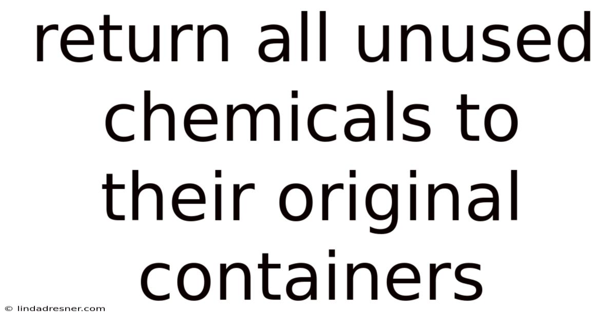 In laboratories, workshops, and even home hobby spaces, returning all unused chemicals to their original containers is a simple yet critical practice that safeguards health, preserves the integrity of experiments, and protects the environment. On top of that, this habit reduces the risk of accidental exposure, prevents cross‑contamination, and ensures compliance with safety regulations. By understanding the reasons behind this rule and learning the proper steps to follow, anyone handling chemicals—students, researchers, or DIY enthusiasts—can create a safer, more reliable workspace.