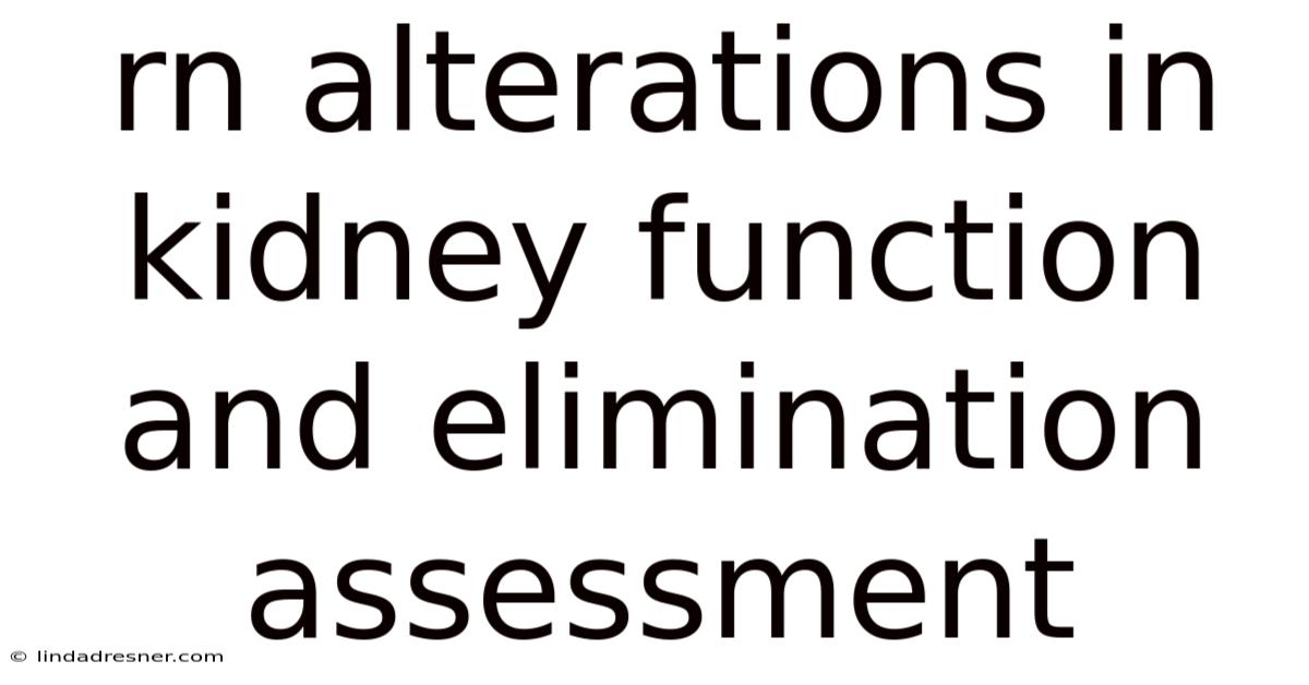 Rn Alterations In Kidney Function And Elimination Assessment
