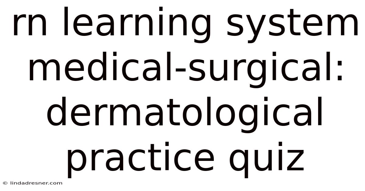 Understanding the RN Learning System in Medical-Surgical: Dermatological Practice Quiz is essential for anyone looking to enhance their knowledge in a specialized and evolving field. This quiz serves as a valuable tool for professionals and students alike, offering a structured approach to grasping the key concepts and practical applications. By engaging with this material, learners can improve their understanding of dermatological practices and the role of technology in modern medicine.
