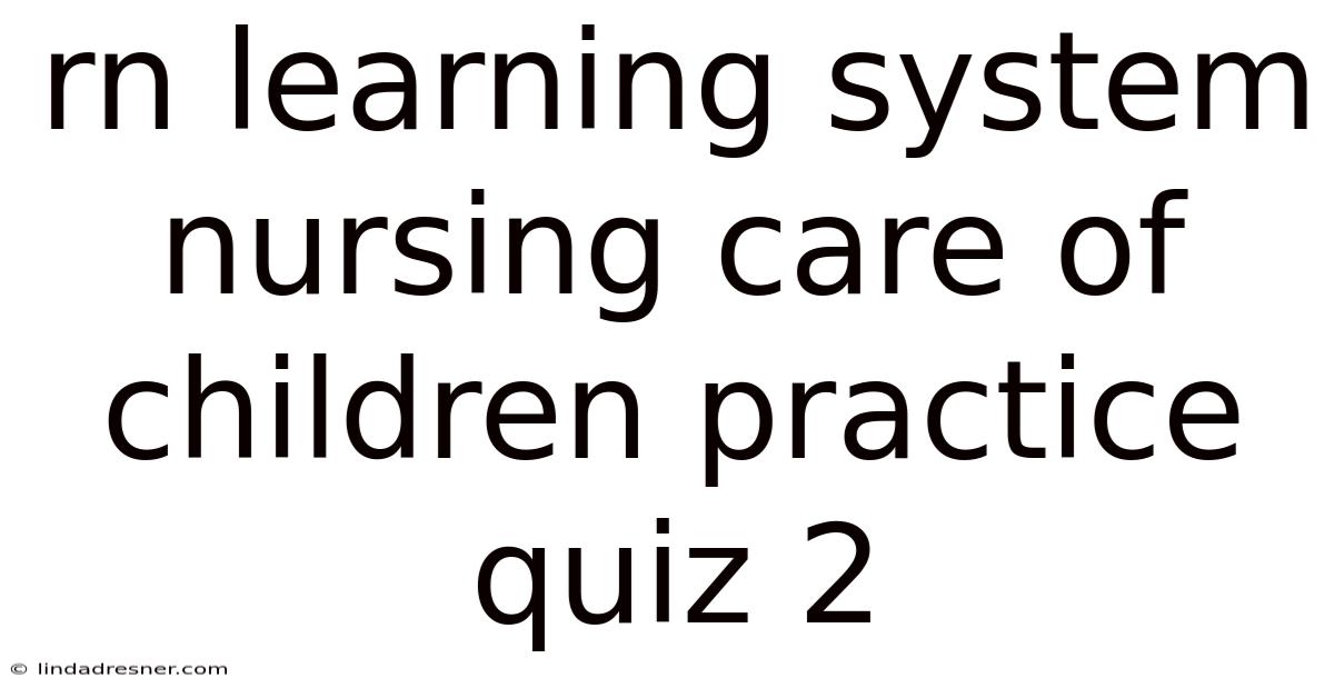 Pediatric nursing requires specialized knowledge and skills to provide appropriate care to infants, children, and adolescents. In practice, the RN Learning System Nursing Care of Children Practice Quiz 2 serves as an essential educational tool for registered nurses seeking to enhance their competence in pediatric healthcare settings. This comprehensive assessment covers critical aspects of pediatric nursing that nurses encounter in daily practice, helping them identify knowledge gaps and strengthen their clinical reasoning abilities And that's really what it comes down to..