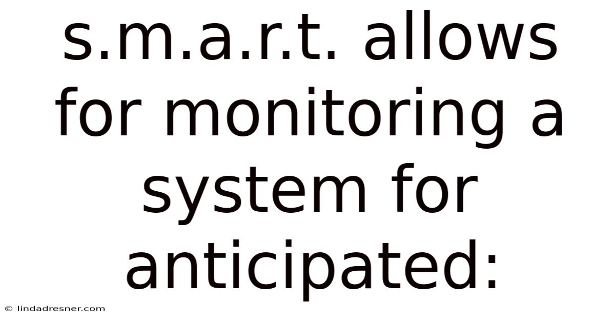 S.M.A.R.T. Allows for Monitoring a System for Anticipated Events: A Proactive Approach to System Management