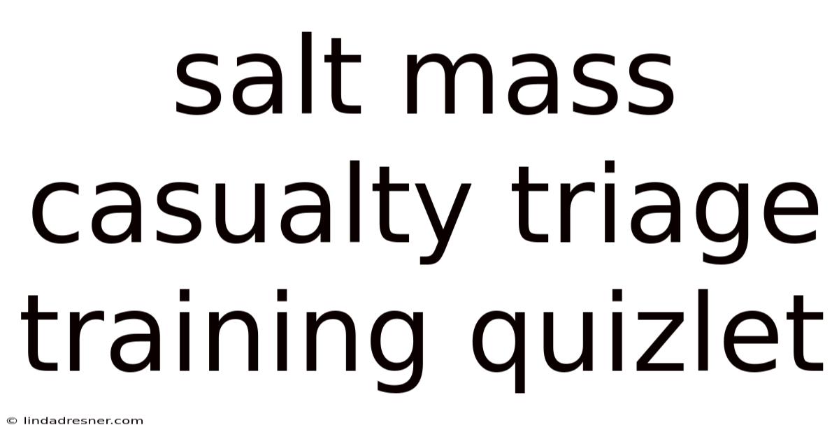 Mastering salt mass casualty triage training is essential for healthcare professionals, first responders, and emergency preparedness personnel. In practice, the SALT system provides a clear, structured approach to patient prioritization that can be rapidly implemented during high-stress mass casualty incidents. Using study tools like Quizlet to learn and reinforce SALT concepts helps check that responders maintain the knowledge needed to act confidently when lives hang in the balance The details matter here..