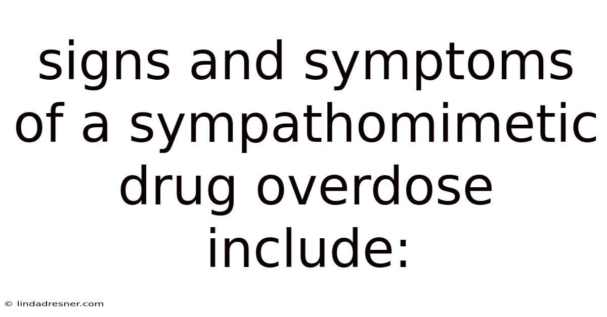 A sympathomimetic drug overdose represents a potentially life-threatening medical emergency that requires immediate recognition and intervention. Because of that, understanding the signs and symptoms of a sympathomimetic drug overdose is crucial for healthcare professionals, first responders, and even laypersons who may find themselves in a situation where quick action could save a life. These substances, which mimic the effects of the body's natural fight-or-flight response, can cause severe physiological disturbances when taken in excessive amounts Practical, not theoretical..