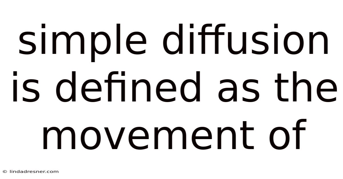 Simple diffusion is defined as the movement of molecules from an area of higher concentration to an area of lower concentration across a semipermeable membrane without the need for energy or assistance from transport proteins. This process is one of the most fundamental mechanisms of passive transport in biological systems and plays a crucial role in maintaining cellular function and homeostasis.