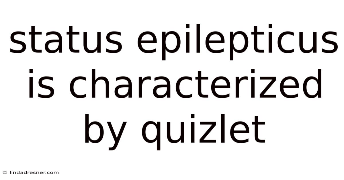 Status Epilepticus Is Characterized By Quizlet