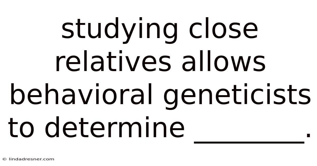 Studying close relatives allows behavioral geneticists to determine heritability of traits, providing a quantitative bridge between genetics and behavior. In real terms, by leveraging the natural variance in genetic relatedness across families, researchers can disentangle the contributions of DNA from environment, illuminate the origins of personality, cognition, and mental health, and inform evidence‑based interventions. While challenges remain—particularly regarding interpretation and generalizability—the continued refinement of family‑based designs and molecular tools promises to deepen our comprehension of the nuanced tapestry that is human behavior Simple, but easy to overlook..