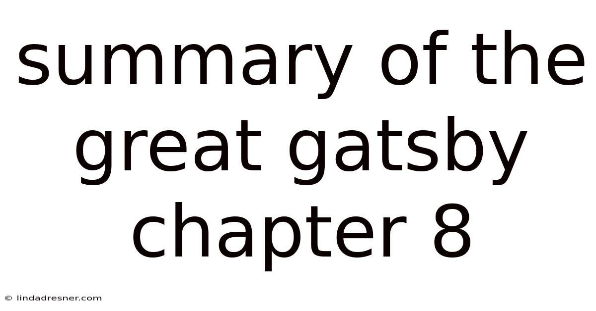 In Chapter 8 of F. In real terms, scott Fitzgerald’s The Great Gatsby, the novel reaches its emotional climax as the consequences of Jay Gatsby’s relentless pursuit of the American Dream become tragically apparent. The chapter, narrated by Nick Carraway, shifts from the glittering parties of West Egg to a somber, introspective tone that reveals the fragility of illusion, the weight of social class, and the inevitability of loss. Below is a detailed, step‑by‑step summary that captures the key events, character motivations, and thematic undercurrents that define this central chapter.