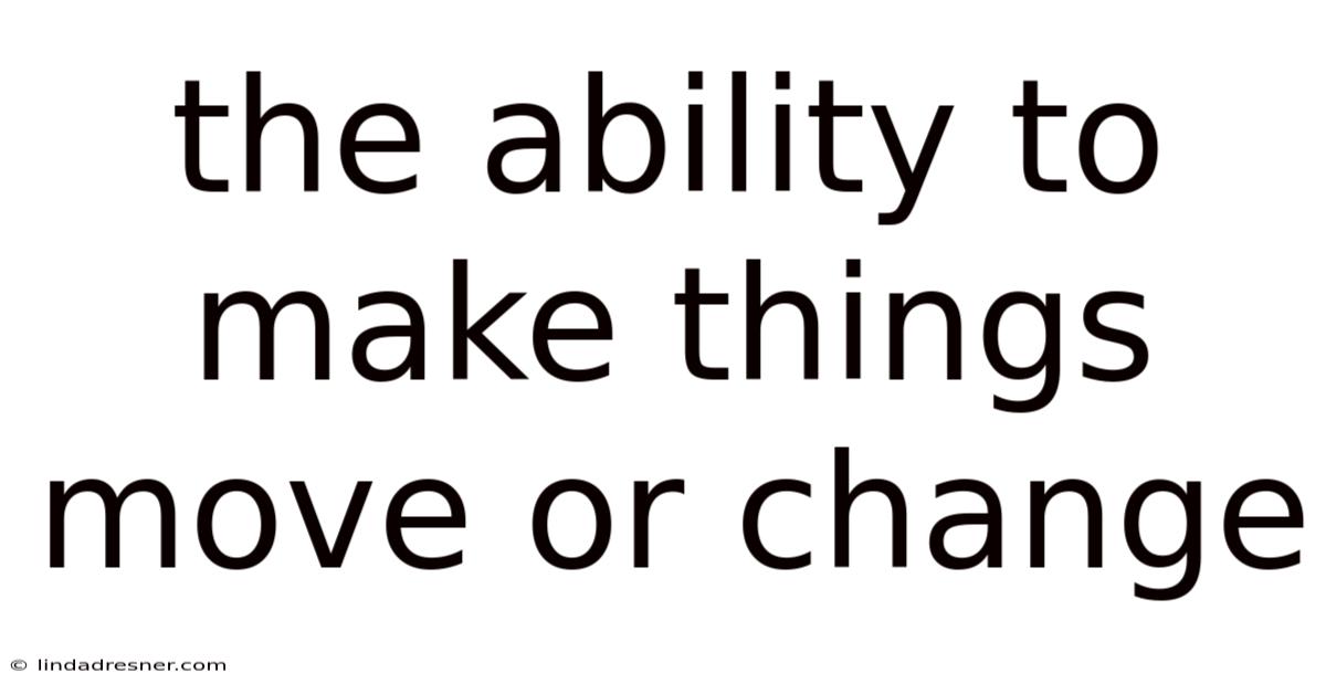 The ability to make things move or change is a fundamental aspect of both the natural world and human innovation. From the smallest atomic particles to the largest celestial bodies, motion and transformation are constant. This phenomenon is not only a physical reality but also a cornerstone of scientific understanding, technological advancement, and even philosophical thought. Whether it's the movement of a pendulum, the transformation of energy, or the evolution of ideas, the capacity to initiate motion or change is deeply embedded in the fabric of existence.