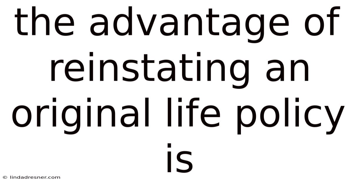 The Advantage ofReinstating an Original Life Policy
