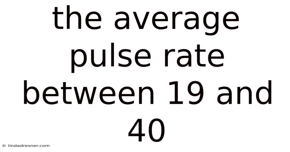 Understanding the average pulse rate between 19 and 40 is essential for monitoring cardiovascular health, optimizing fitness routines, and recognizing early warning signs of underlying conditions. For young adults in this age bracket, a resting heart rate typically falls between 60 and 100 beats per minute, though highly active individuals often record readings well below that threshold. This full breakdown explains what your pulse reveals about your body, how to track it accurately, and which physiological and lifestyle factors shape your cardiovascular baseline The details matter here. Practical, not theoretical..