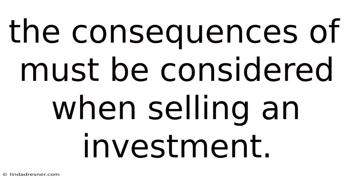 Understanding the consequences of selling an investment is a critical aspect of financial decision-making. When you decide to sell your investment, it’s easy to focus on the immediate gains or losses, but the broader implications can significantly affect your long-term financial health. This article explores the key consequences of selling an investment, helping you make informed choices that align with your goals Turns out it matters..