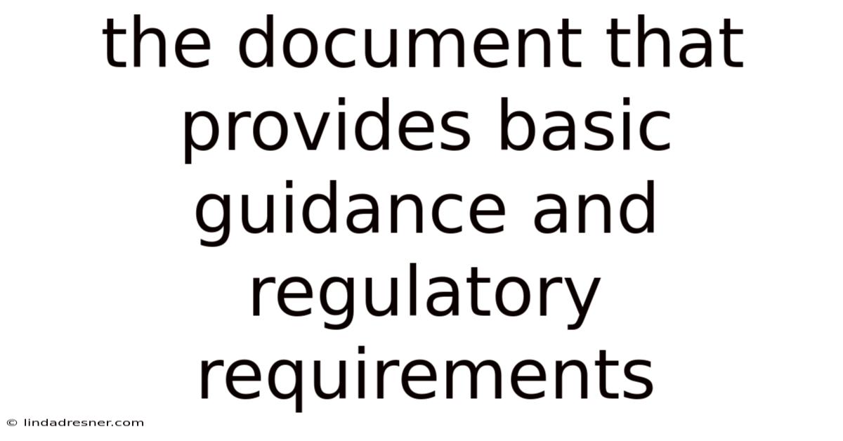 The document that provides basic guidance andregulatory requirements serves as the cornerstone for compliance, operational clarity, and risk management across countless industries and government sectors. Often referred to as a Compliance Framework, Regulatory Guide, Standard Operating Procedure (SOP), or Code of Practice, this foundational text translates complex laws and standards into actionable instructions. Because of that, its primary purpose is to establish unambiguous expectations for behavior, processes, and documentation, ensuring organizations operate within legal boundaries while striving for best practices. Understanding its structure, content, and critical importance is vital for anyone navigating regulated environments Not complicated — just consistent..