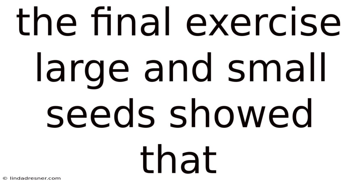 the final exercise large and small seedsshowed that seed size directly influences germination speed and early vigor, a insight that guides both classroom experiments and real‑world agricultural planning. this concise observation serves as the core takeaway for educators seeking to illustrate how physical attributes of plant propagules affect growth outcomes.