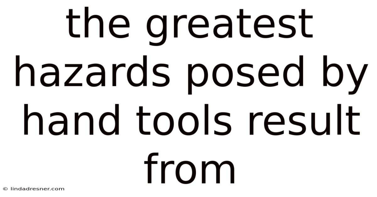 The Greatest Hazards Posed by Hand Tools Result From Human and Systemic Oversights