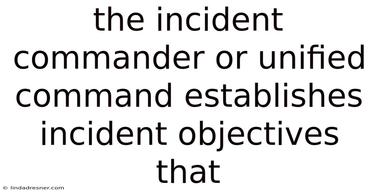 The Incident Commander Or Unified Command Establishes Incident Objectives That