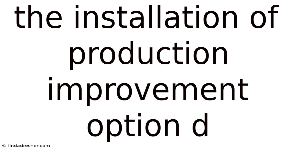 Understanding the Installation of Production Improvement Options D is essential for anyone looking to enhance efficiency and productivity in their business processes. This guide digs into the intricacies of implementing these options, highlighting their benefits and practical applications. Whether you are a manager, entrepreneur, or team leader, grasping the significance of this approach can transform your operations. By focusing on clear explanations and actionable insights, this article aims to empower you with the knowledge you need to succeed.