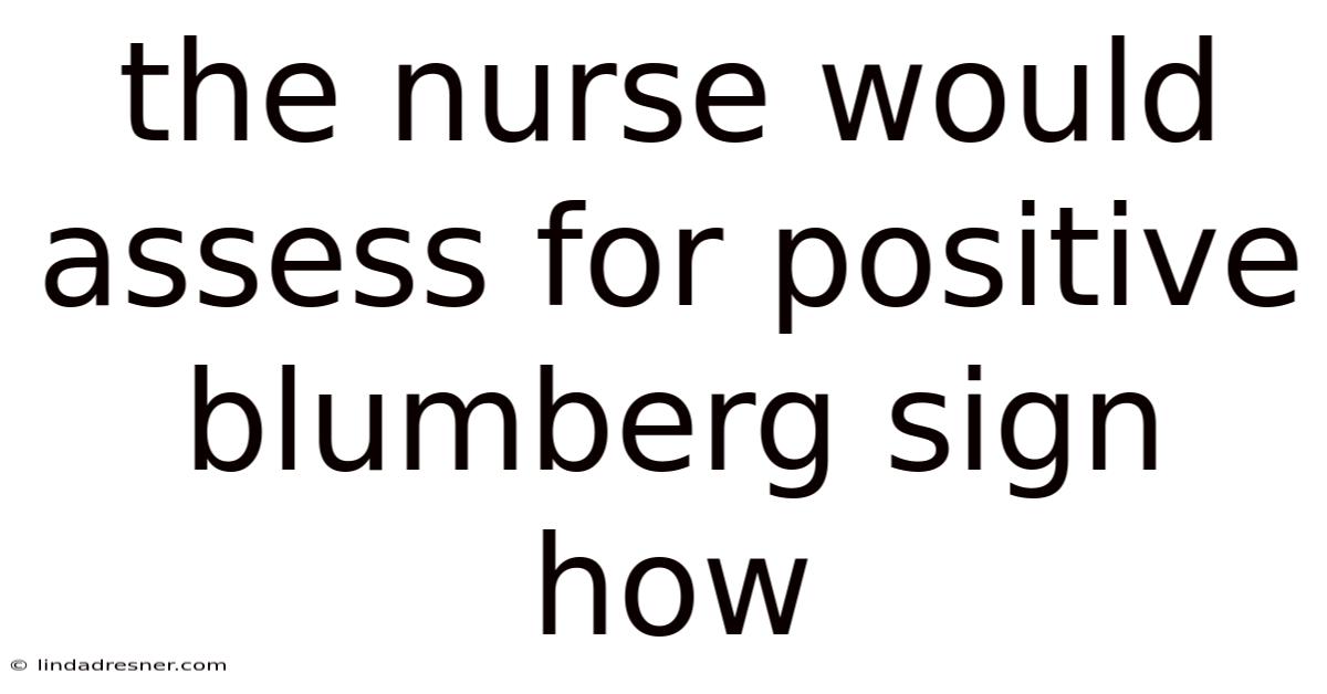 The Nurse Would Assess for Positive Blumberg Sign: A thorough look