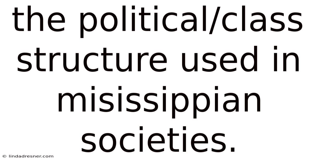 The political/class structure used in Mississippian societies was a multi‑tiered system that intertwined hereditary authority, religious ideology, and economic control. By examining the distribution of elite residences, the organization of labor for monumental construction, and the mechanisms of surplus redistribution, we gain insight into how these ancient peoples built some of the largest and most enduring settlements north of Mexico. Now, the Mississippian world wasn't a monolithic entity, but a vibrant tapestry of interconnected communities, each adapting and innovating within a shared cultural framework. Understanding this framework not only enriches our knowledge of pre‑historic social dynamics but also offers parallels to modern discussions of power, governance, and community organization. Their sophisticated political and social organization, rooted in a deep understanding of their environment and a complex belief system, allowed them to create a legacy that continues to fascinate and inform our understanding of the past And it works..