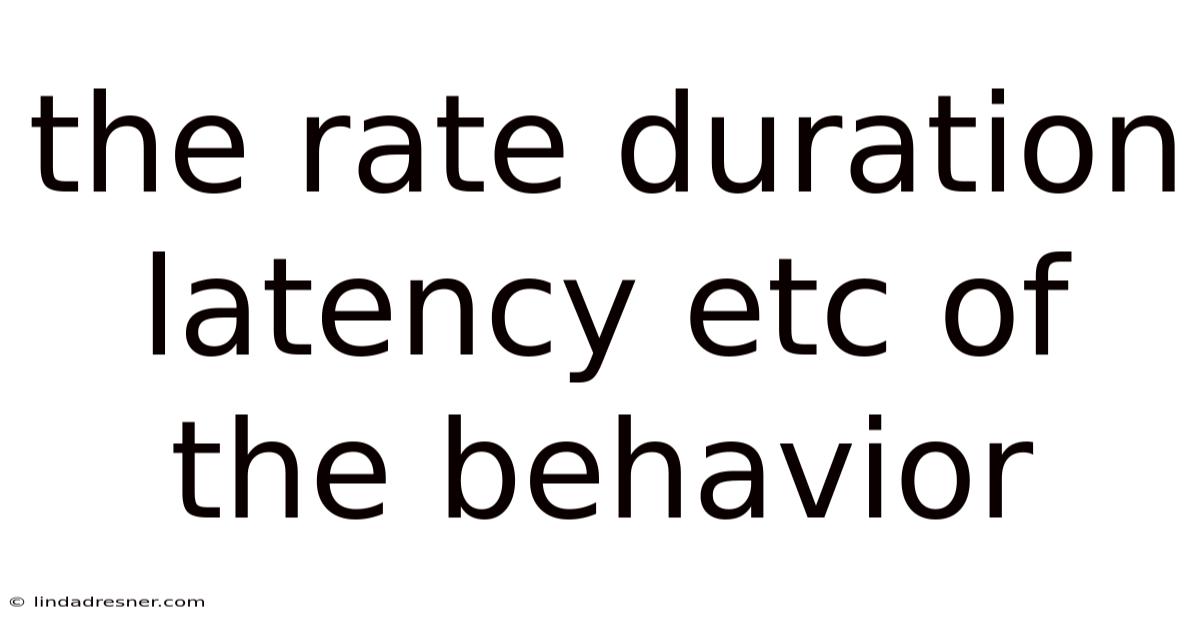 Behavior is a fundamental aspect of life, observed in humans, animals, and even in some microorganisms. Understanding the rate, duration, latency, and other parameters of behavior is essential for researchers, educators, and anyone interested in the science of learning and interaction. These metrics provide a quantitative way to measure, analyze, and ultimately influence behavior—whether in a classroom, a therapy session, or a wildlife study Turns out it matters..