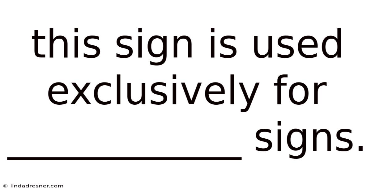 This Sign Is Used Exclusively For ____________ Signs.
